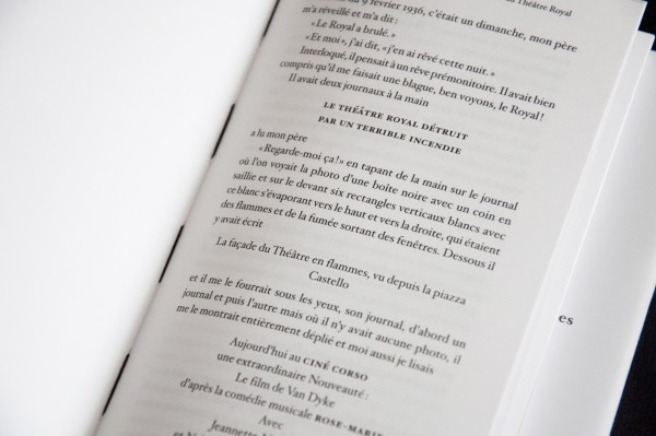L’Incendie du Théâtre Royal commence avec la nouvelle de l’incendie. Le père l’apprend en lisant le journal. « Et moi », j’ai dit, « j’en ai rêvé cette nuit. » Une prémonition ? En attendant, le père continue à lire les détails de la catastrophe, le feu, les pompiers qui accourent avec l’échelle Magirus. Dans cet incendie à la fois réel et métaphorique, c’est l’enfance qui brûle en même temps que l’image d’une ville bien-aimée. L’incendie reviendra à la fin du livre, mais cette fois sous forme de cauchemar. « “Au feu !”, je crie. » Et c’est le protagoniste qui va conduire l’autopompe avec l’échelle Magirus : « je ne sais pas la conduire cette autopompe, où est le frein, je suis crevé, je suis paralysé par la fatigue, je n’arrive pas aux commandes, c’est plus fort que moi, l’autopompe fonce, elle vole, heureusement que la rue est libre, l’heure est tardive, sur la piazza Castello il n’y a pas un chat. J’arrive à l’arrêter juste devant le Théâtre. » Et voilà qu’avec ce geste ultime, l’œuvre de Lattes est devenue circulaire et qu’il est possible de la relire. Le feu l’ouvre, le feu la referme et la foule (les Autres) assiste au spectacle indécent d’un homme qui vit. -