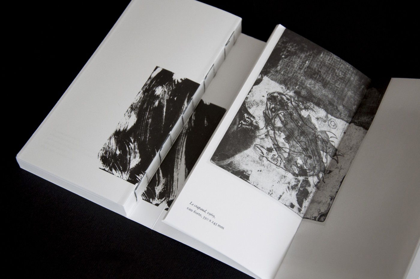 « […] Moyen figuratif à l’instar de la peinture, l’eau-forte est, en quelque sorte, son contraire, son ombre […] », écrit-il, lui qui est fasciné par ce médium dont il comprend la nature ambiguë et insidieuse. Ce qui l’intéresse, c’est son côté imprévisible. La gravure, qui par sa technique même, jouant sur l’attente et différant son propre résultat, nie l’immédiateté, se révèle ainsi d’une très grande fécondité.