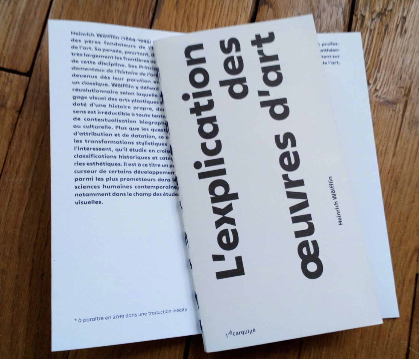 Cette publication annonce les Principes fondamentaux de l’histoire de l’art à paraître en 2019 dans une traduction inédite, elle est le premier jalon d’un chantier d'édition en collaboration avec l’Université de Zürich.