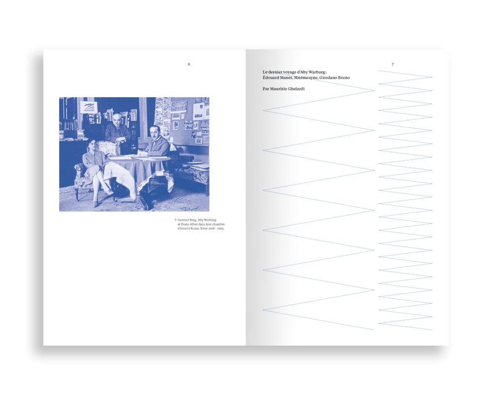Les derniers textes romains d'Aby Warburg constituent, selon les propres mots de leur auteur, une « seconde période créatrice ». Réunis sous le titre Miroirs de faille. À Rome avec Giordano Bruno et Édouart Manet , 1928-1929, ceux-ci composent le premier ouvrage d’une collection créée par les éditions L’écarquillé et consacrée à l’historien d’art allemand – preuve, s’il en était encore besoin, de l’actualité comme du rayonnement de l’homme et de sa pensée. Cette nouvelle publication de ses écrits en français contient le journal que Warburg écrivit durant un séjour à Rome avec son assistante, Gertrud Bing, entre l’automne 1928 et le printemps 1929 – l’année même de sa mort. Faisant retour sur les sujets et travaux des décennies précédentes (les survivances de l’antiquité païenne dans l’art et la pensée de la Renaissance, la fonction « mnémonique » de motifs iconographiques de la chute et de l’ascension) ce voyage en Italie devait aussi, pensait-il, offrir aux jeunes générations d’historiens des pistes méthodologiques renouvelées, dans la lignée de son iconologie des « intervalles ». C’est du reste avec prescience qu’il envisageait à cette même période un destin fructueux aux efforts entrepris ; de fait, la grande vitalité des études warburgiennes (et l’héritage spirituel revendiqué par certains historiens de l’art aujourd’hui) lui donne raison. Ce qu’il nomma sa « fenaison sous l’orage » – l’internement psychiatrique de Kreuzlingen n’était pas si loin – était aussi destiné à enrichir l’Atlas Mnémosyne, montage et cartographie visuelle de l’expressivité (des « engrammes ordonnés », disait Warburg), pour lequel il écrivit une introduction, publiée dans cet ouvrage. Celui-ci contient plusieurs textes : le Journal de la Kulturwissenschaftliche Bibliothek Warburg (souvent raccourci par son auteur en « KBW ») est le résultat de réflexions croisées avec Bing ; les lettres envoyées à l’équipe de la KBW – les historiens d’art Fritz Saxl et Edgar Wind – s’insèrent dans le cours du journal, en faisant état de l’avancement des recherches et de l’importance que Warburg leur attribuait.