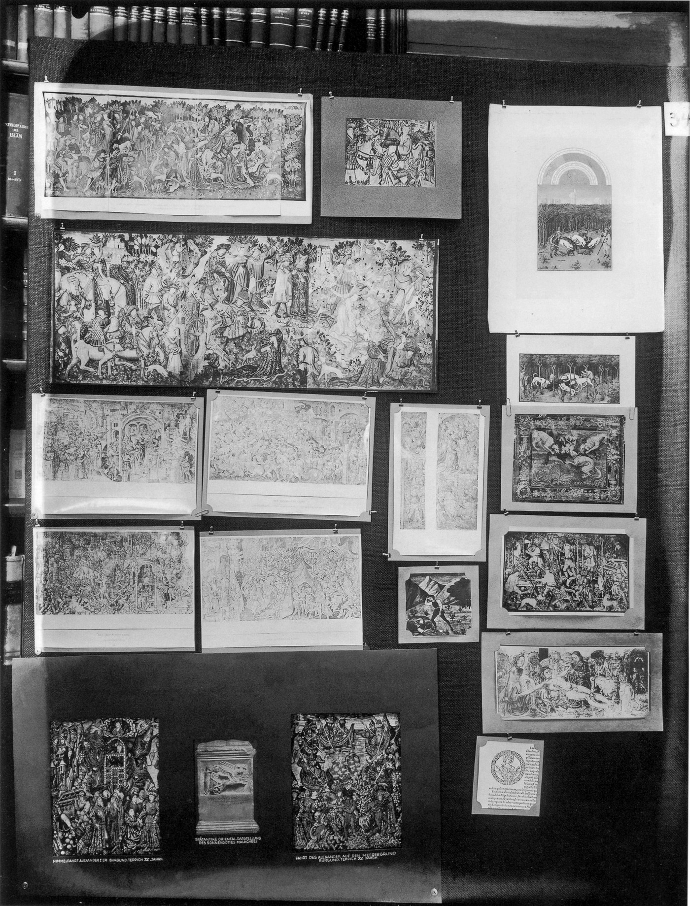 D’abord supports de conférences, les planches constellées d’images prennent leur autonomie et fonctionnent en relation avec la Bibliothèque Warburg, comme l’explique Recht citant souvent le journal de travail : les livres rangés en quatre thèmes (image, mot, orientation, action) répondent autant que l’atlas à une logique de voisinage et de montage sans cesse retravaillée par Warburg.